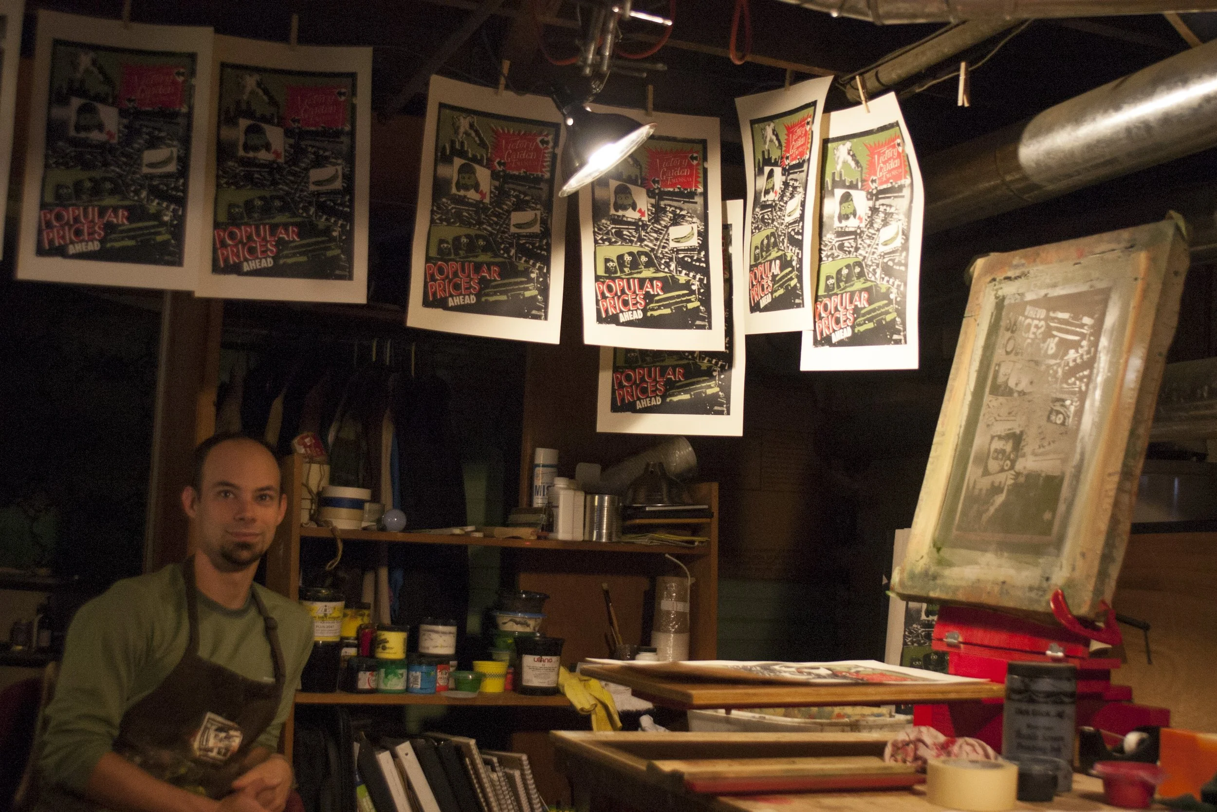 Joe circa 2005 in his basement screen print studio making the first posters that would become the VGoT.
